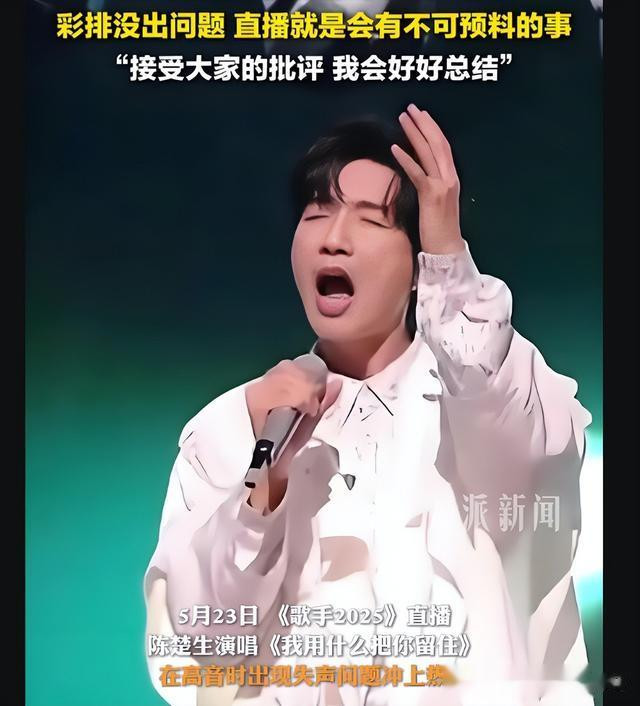 反观陈楚生,非但没有‘甩锅’给节目组,找理由为自己澄清,还在沈梦辰采访自己,聊到‘失音’热搜时,主动向全网观众道了歉,直言:就是自己的失误,因为直播太过兴奋,所以才导致那段高音没唱上去,最后还微笑补充道:直播的魅力,不就在于舞台上的不可预料吗?